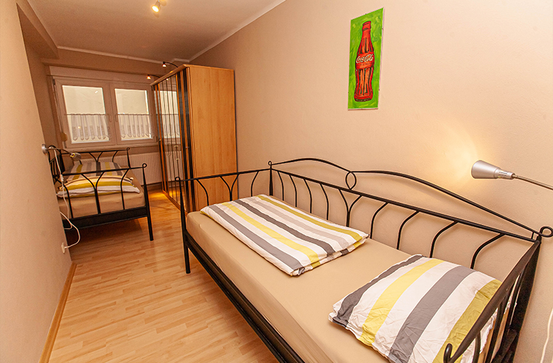 In dieser tollen Ferienwohnung, die sich im EG befindet, fühlt man sich sofort angekommen. Ob man alleine oder mit 6 Personen anreist genügend Platz erwartet Sie allemal. In der modern eingerichteten Küche fehlt es Ihnen an nichts. Sie können ohne Weiteres ein 3 Gänge Menü für Ihre liebsten zaubern, oder einfach nur ein Süppchen in der Mikrowelle erwärmen. Der Abwasch erledigt die Spülmaschine ohne viel Aufwand hinterher. Ein rustikales Doppelbettschlafzimmer mit neuen Matratzen sowie ein Schlafzimmer mit zwei Einzelbetten sorgen für Ihren erholsamen Schlaf. Das Highlight ist aber das Bad, welches mit einer tollen Wellnessdusche ausgestattet ist. Gerne können Sie sich nach einer Wanderung oder einfach nur zur Erfrischung eine wohlfühlende Wassermassage gönnen. Das Wohnzimmer lädt zum gemeinsamen verweilen ein. Kann aber auch ohne weiteres als ein dritter separater Schlafraum genutzt werden. Das Schlafsofa welches eine Bettenhöhe hat ist dafür bestens geeignet. Gerne können Sie im Garten unter dem Kirschbaum ein Gläschen Moselwein oder auch ein Bierchen genießen. Aber auch die wohnungseigene Terrasse lädt hierzu ein. Bettwäsche sowie Handtücher werden selbstverständlich von uns zur Verfügung gestellt und mit einer Reinigungsgebühr abgerechnet. Kostenpflichtig haben Sie ebenfalls die Möglichkeit der Nutzung einer Waschmaschine sowie eines Trockners, welche sich in einem separaten Waschraum befinden. Gerne können Sie aber auch einen Urlaub in einer unseren anderem tollen Ferienwohnungen in mitten des Herzens von Trier buchen. Es lohnt sich! Kommen, Genießen und Wohlfühlen.