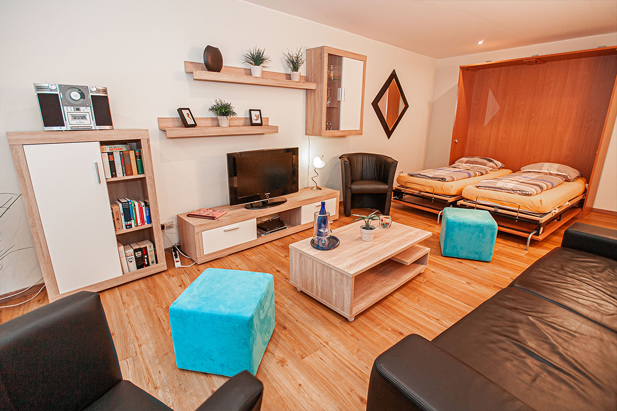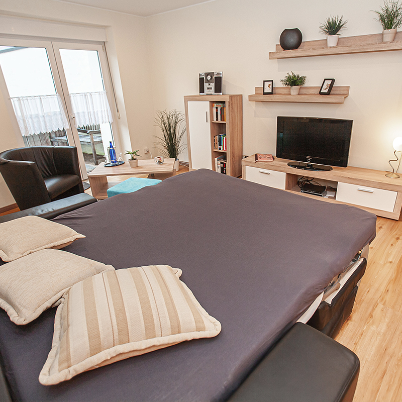 Genuss und Spaß finden sie in unserer Küche. wo Sie für Ihre liebsten ein 4-Gänge-Menü ohne weiteres zubereiten können. Mit den hochwertigen Küchengeräten sowie einer großen Auswahl an Kochequipment, die sich in Ihrer Küche befinden, wird Ihnen jedes Menü spielend leicht gelingen. Hinterher erledigt die Spülmaschine den Abwasch im nu, während sie Ihr Digestif genießen können. Flexibel und bequem ist unser neues tolles Wohnzimmer, welches sich multifunktional zu einem weiteren Schlafraum für weitere vier Personen umrüsten lässt. Mit einem Schrankbett und einer außergewöhnlichen Schlafcouch stehen Ihnen 4 weitere vollwertige Betten zur Verfügung in denen man sich richtig wohl fühlt. Der dazugehörige Balkon verführt zu geselligen Abenden mit einem Gläschen Moselwein. Unser großräumiges Bad bietet allen Gästen sowohl für einen kurzen so wie für einen langen Aufenthalt den richtigen Wohlfühleffekt. Bettwäsche sowie Handtücher werden selbstverständlich von uns zur Verfügung gestellt und mit einer Reinigungsgebühr abgerechnet. Kostenpflichtig haben Sie ebenfalls die Möglichkeit der Nutzung einer Waschmaschine sowie eines Trockners, welche sich in einem separaten Waschraum befinden. Gerne können Sie aber auch einen Urlaub in einer unseren anderen tollen Ferienwohnungen in mitten des Herzens von Trier buchen. Es lohnt sich!